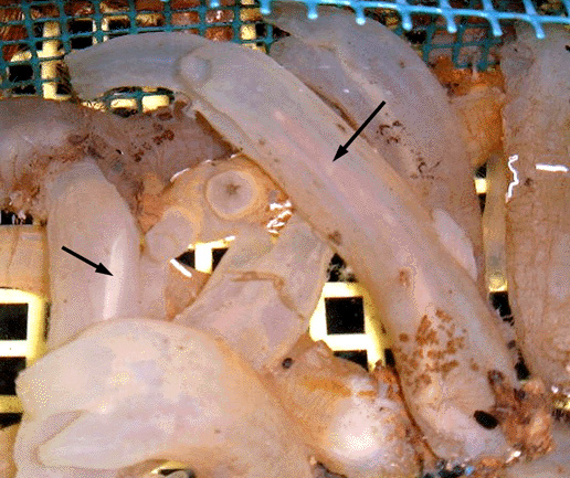 with full gonoducts (indicated by arrows) which can be seen through the test.